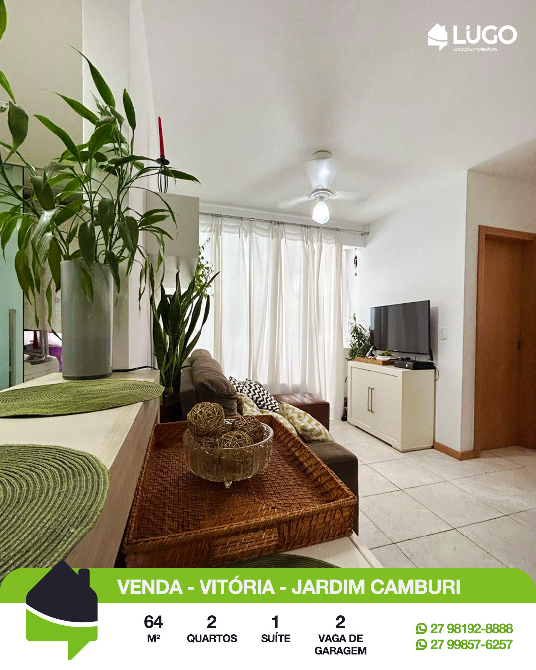 Conforto em Jardim Camburi – 2qts – 1 suíte canadense – 64m2